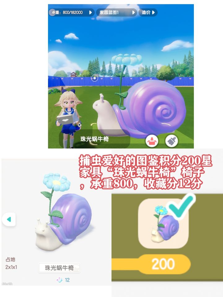 捕虫爱好的图鉴积分200星家具“珠光蜗牛椅”椅子,承重800,收藏分12分。