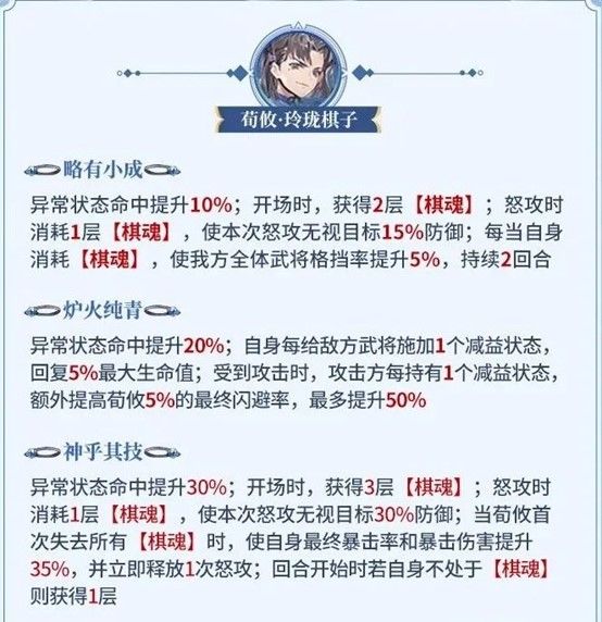 提高荀攸的回复能力和闪避率,荀攸最开始的定位是个输出,虽然从来没有回归过自己的定位,不过这个幻武效果的设计意图更加模糊了他的定位。