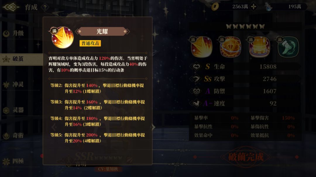 当然也可以使用纯肉装,毕竟宵明的四维成长很高,能站得住也是很不错的选择