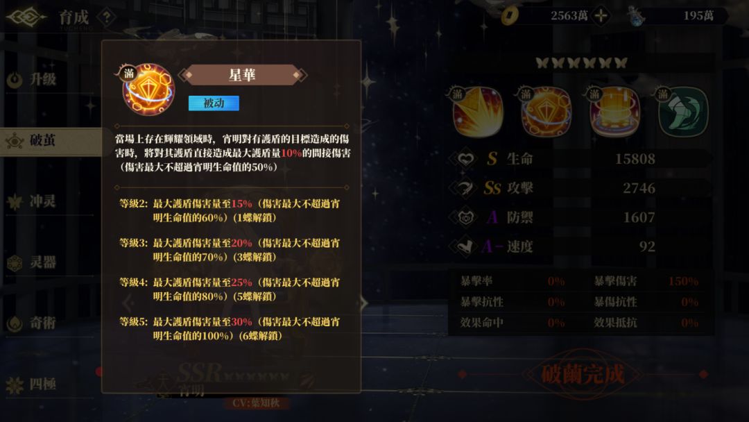 异途奇术·奭灵:当宵明处于【辉耀领域】中时,其伤害对护盾造成的伤害最大量额外增加宵明生命的15%/30%/50%