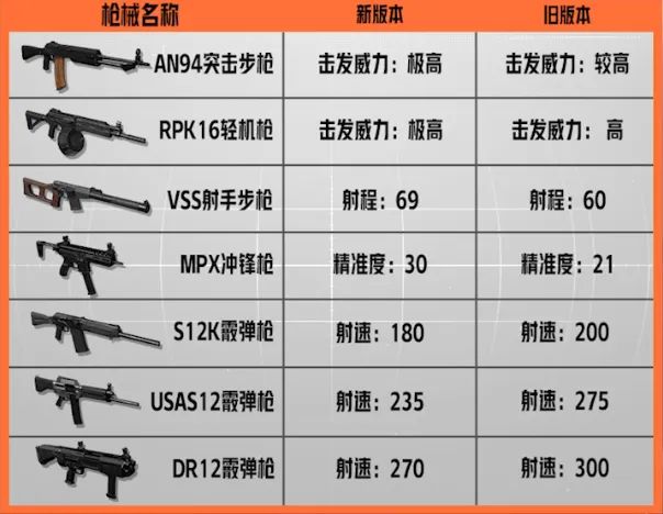 另外,部分武器的数值属性也进行了调整,具体调整可参考下图,老皮也不多做赘述了。