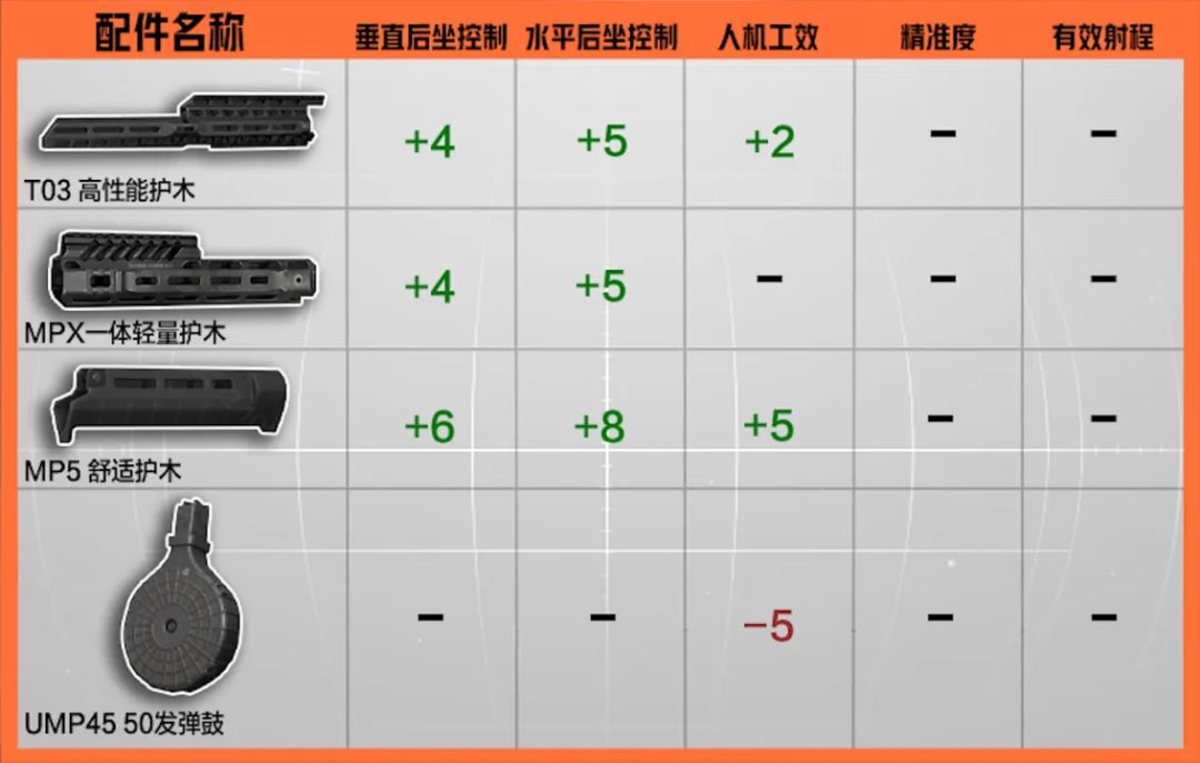 除此之外还新增了一批配件,配件属性可查看下方表格,这里老皮就不一一介绍了。