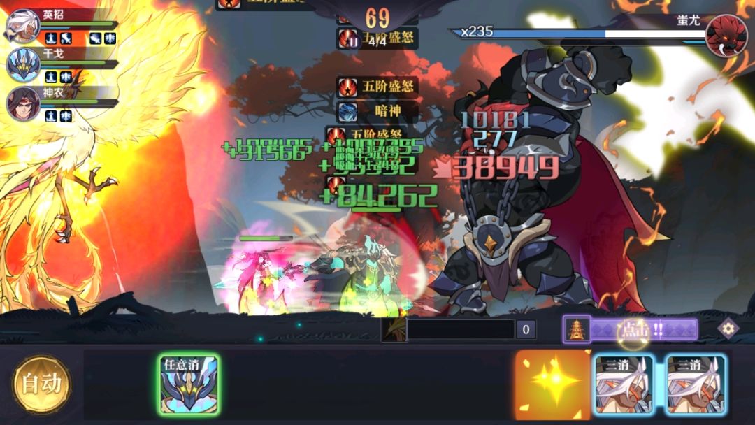 ③蚩尤爆发时,会有一个非常明显的后摇+斧子发光动作,配合手动释放神兵,卡好时机,通关问题不大;