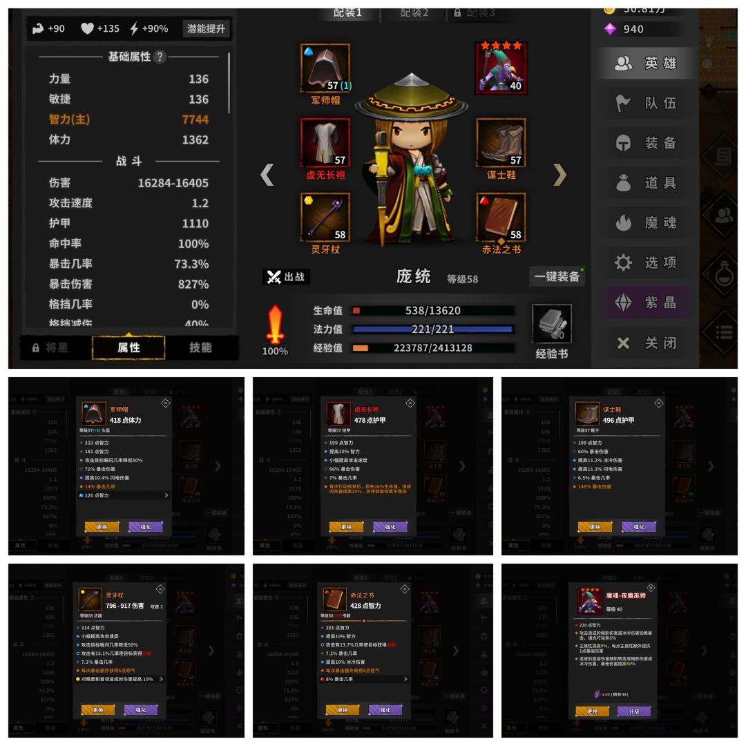 庞统装备,70暴击,两条防闪避,一迟缓一崩解