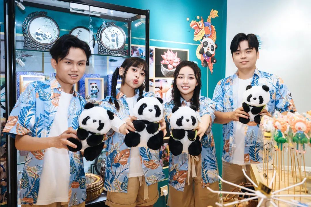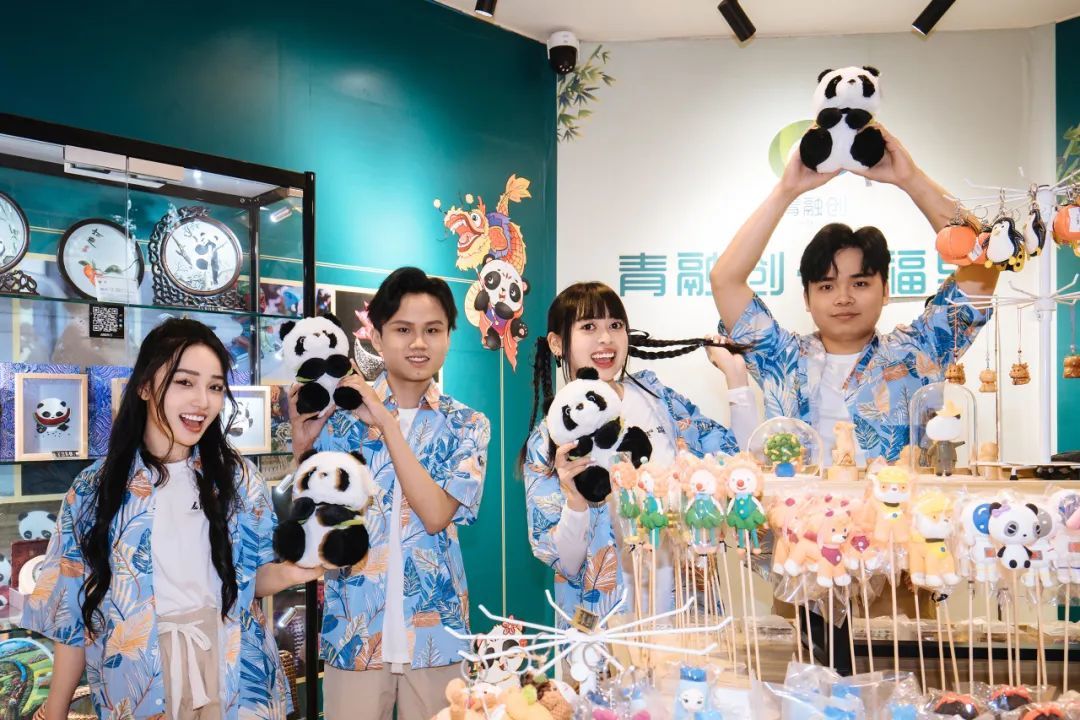 来自越南的VNS战队成员来到成都体验当地的文化创意馆,对可爱的大熊猫公仔爱不释手~