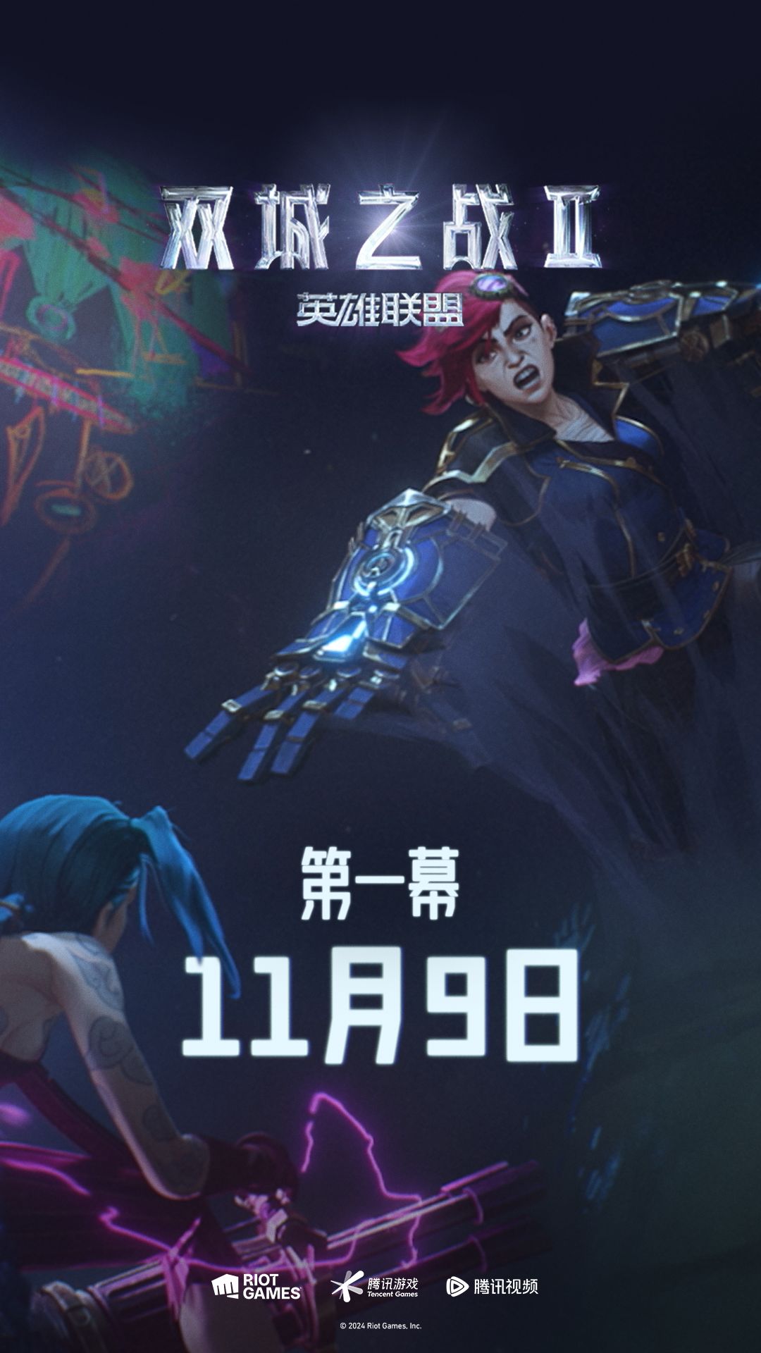 11月9日、16日、23日,《双城之战》动画第二季全球同步播出,三幕揭晓他们的抉择与蜕变!召唤师们敬请期待吧~