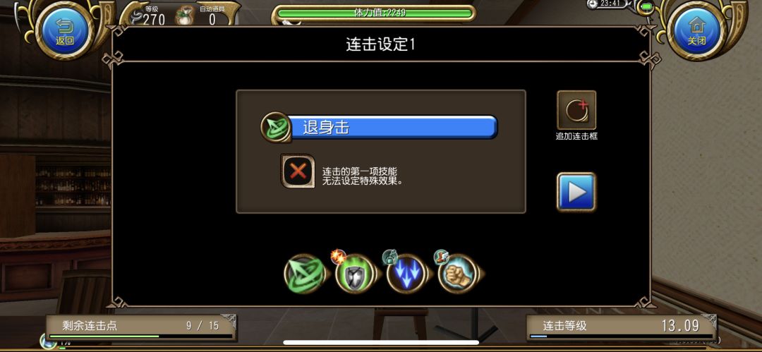 连击4:退身击连击,属于五阶部分,抄作业就行,神速buff时间要到了除非不安全就选择放这个技能在输出同时补上神速buff,退身击机制受字数限制不在此篇讲
