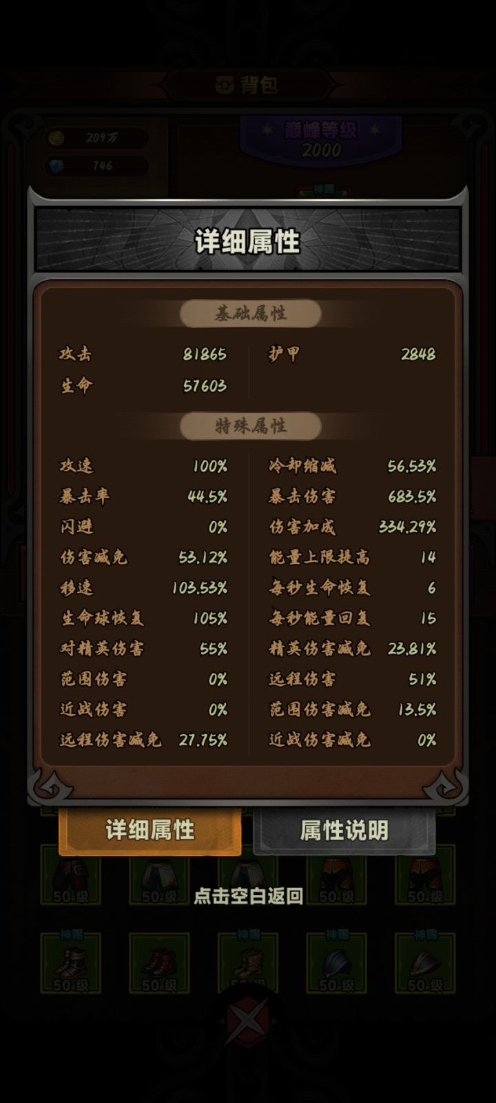 话不多说,直接上图,上了枭兽之后伤害有很大提升,可以更稳定速刷,想要速刷,移速宝石必须拉满,拉满之后装备带滑板鞋,杀怪后直接弹射起步,同时这套的共鸣把鞋子换成增伤装备就可以冲层,冷缩尽量到50%或者60%,不然枭兽会有真空期比较长,另外,毒蛛貌似是锁面板的,变身期间召唤的毒蛛变原始形态伤害不会变,大家放心食用。