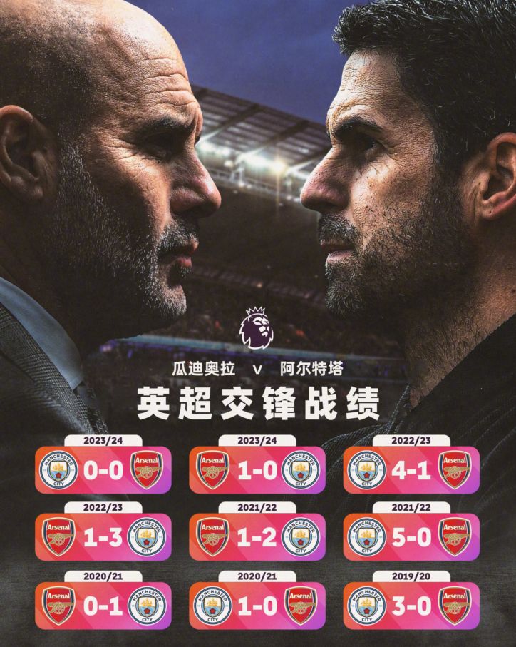 师徒交锋!英超天王山之战即将打响!曼城VS阿森纳!