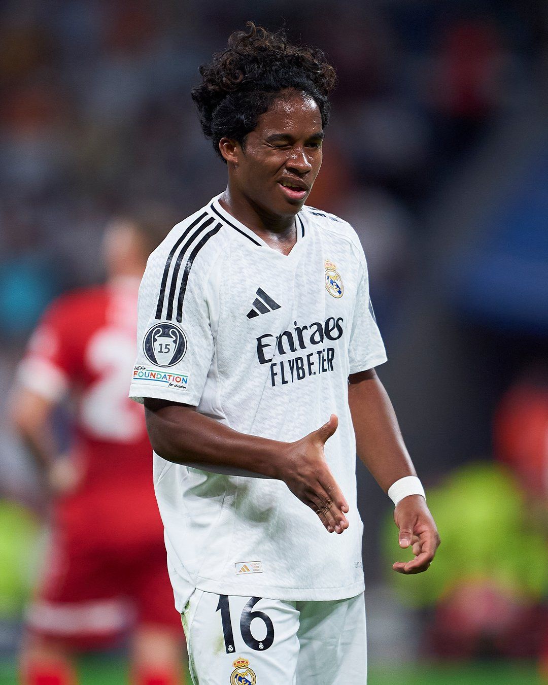 而联赛表现不佳的皇马在欧战中还是展现了自己的绝对统治地位!虽然在比赛过程中遭到斯图加特的扳平,但凭借着强有力的个人能力最终3-1拿下对手!小孩哥恩德里克替补首秀登场也是打入了自己在欧冠的首粒进球,并创下了皇家马德里最年轻欧冠进球纪录!