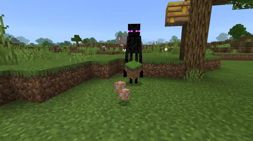 我们先和小黑对视5秒钟,小黑就会被冒险家的眼神电到~然后扔出2个命令方块!(误