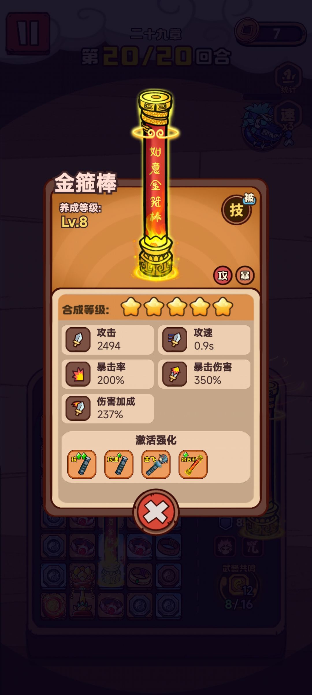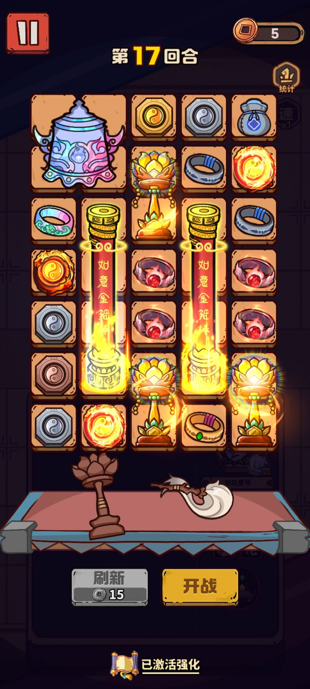 前期推图 用送的棍棒+戒指+钱包就行,卡卡通关,棍棒2个其他都用戒指加攻速暴击,10关以后可以上2-4个灯,还有八卦占位少可配合背包伤害加成。