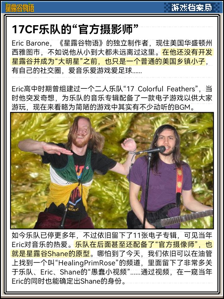 Eric Barone,《星露谷物语》的独立制作者,现住美国华盛顿州西雅图市,不如说他从小到大都未远离过这里。在他还没有开发星露谷并成为“大明星”之前,也只是一个普通的美国乡镇小子,有自己的社交圈,爱音乐爱游戏爱足球......