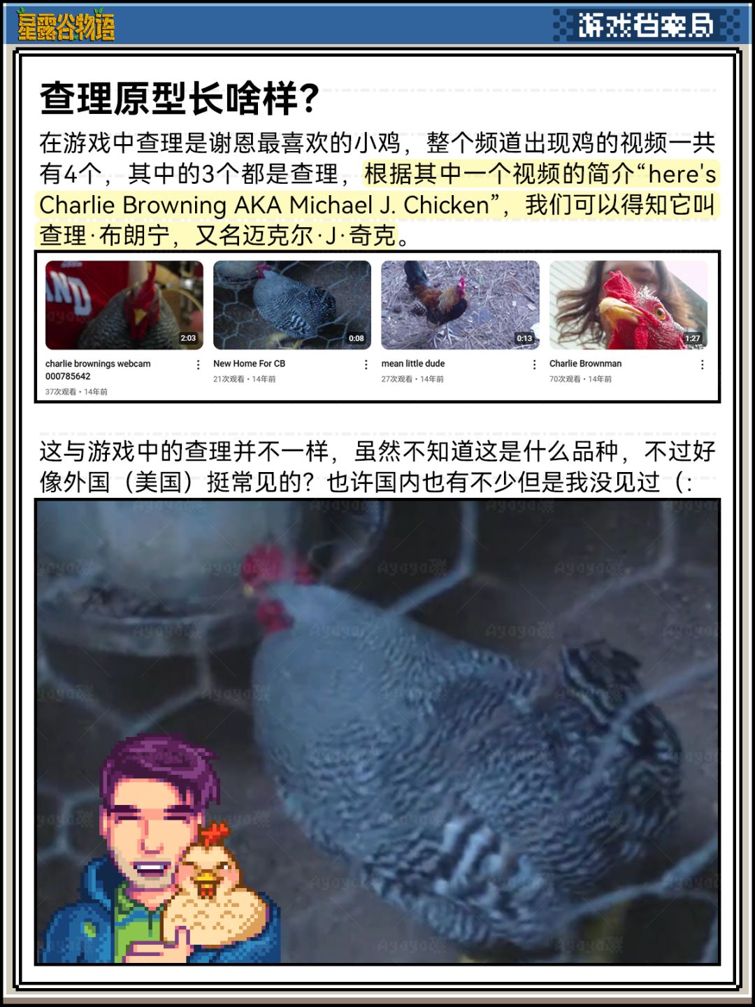 🔍我找到了星露谷谢恩的原型,还有小鸡查理