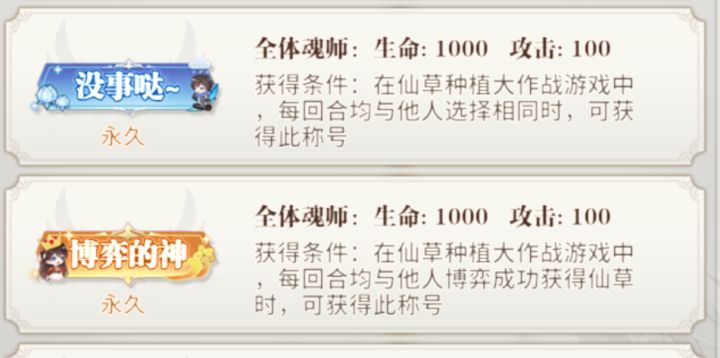 有两个称号,触发条件:全赢或者仙草数目0,都有了第二次活动再次触发即可获得500钻石,两个就是1000钻石。