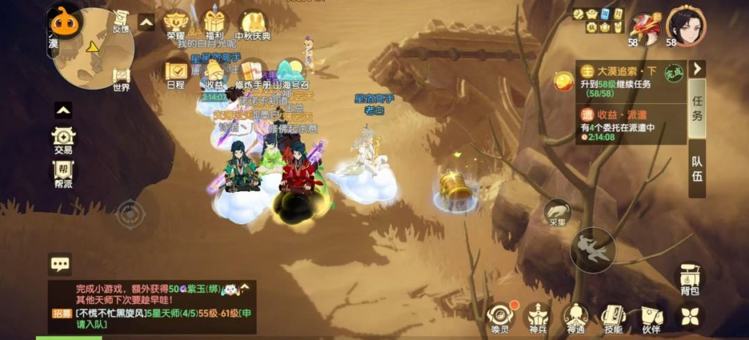 6. 帮派篝火晚会通过篝火晚会玩小游戏,捡宝箱都可以获得修炼丹。