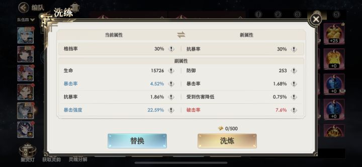 灵韵2号位:暴击,暴击减免这两个是比较重要的属性,最好就是两个一起刷出来,暴击有5点,暴击减免15点以上可以保留