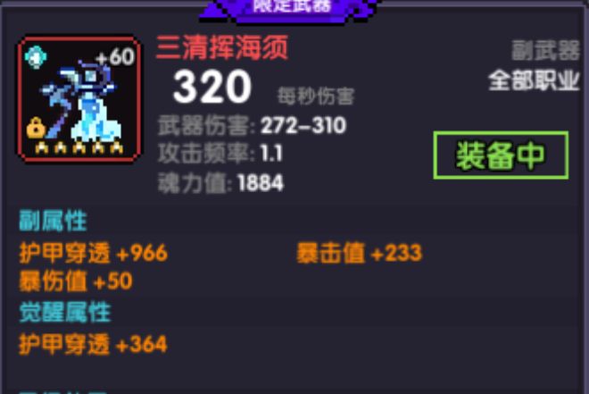 水限定:爆伤+护穿+攻强/(暴击值) 觉醒属性:爆伤/攻强/穿透