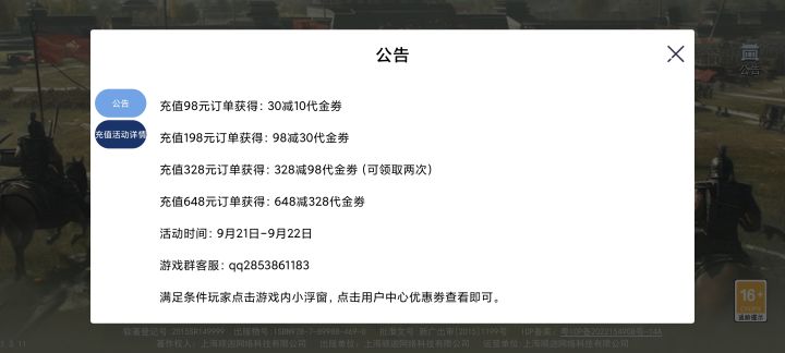#小小曹操传 官服今日新出了一个充值送代金券的活动,低至7.5折,大佬不要错过!