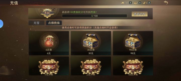 点券只有98、328、648档位,没有198的