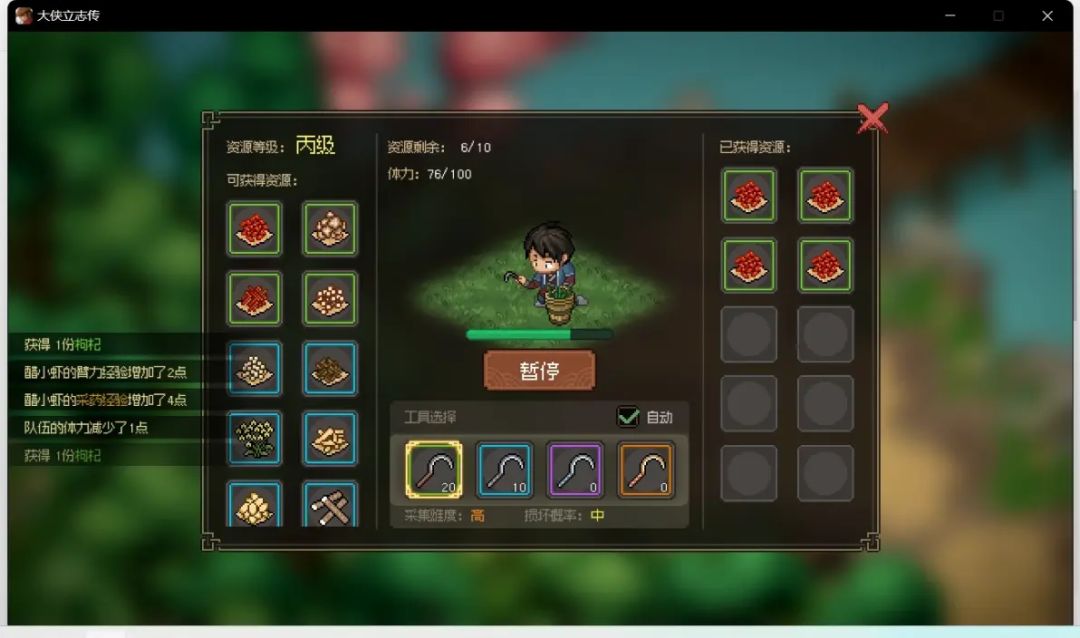 这里的物资应该是2-3天刷新一次,我们可以打完之后去野狼谷,然后琼花谷,去大梁城买点物资或参加个拍卖,再来一轮;差不多刷2-3轮,我们臂力也就上来了。这里记得把武道里(林的前三个属性点一下)属性内容大概是:1的臂力=最终伤害加成...具体多少我忘记了;