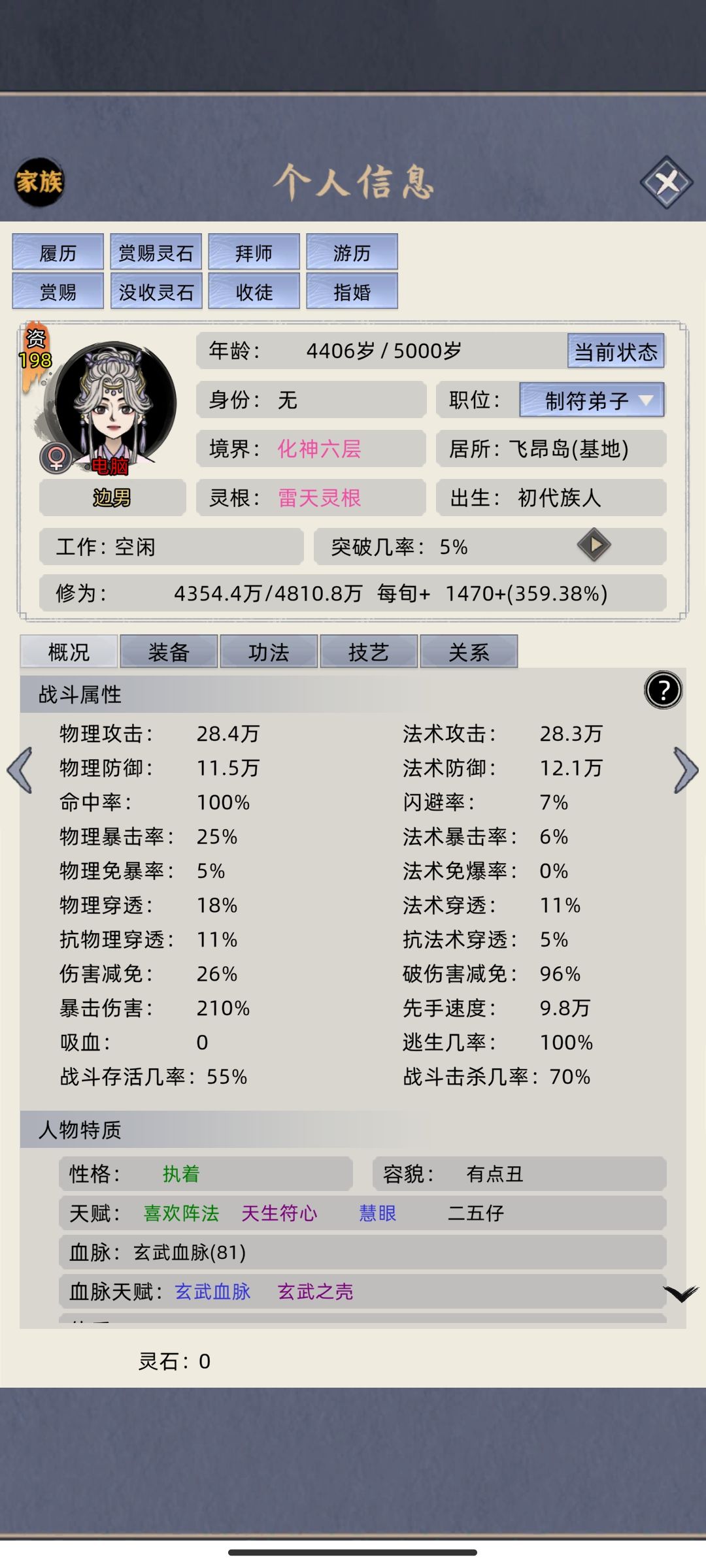 家族模式,无装备,三部加属性功法,少一本都不破防,两个血脉神通用来输出,打得俩化神一个高命中一个高破伤害减免。