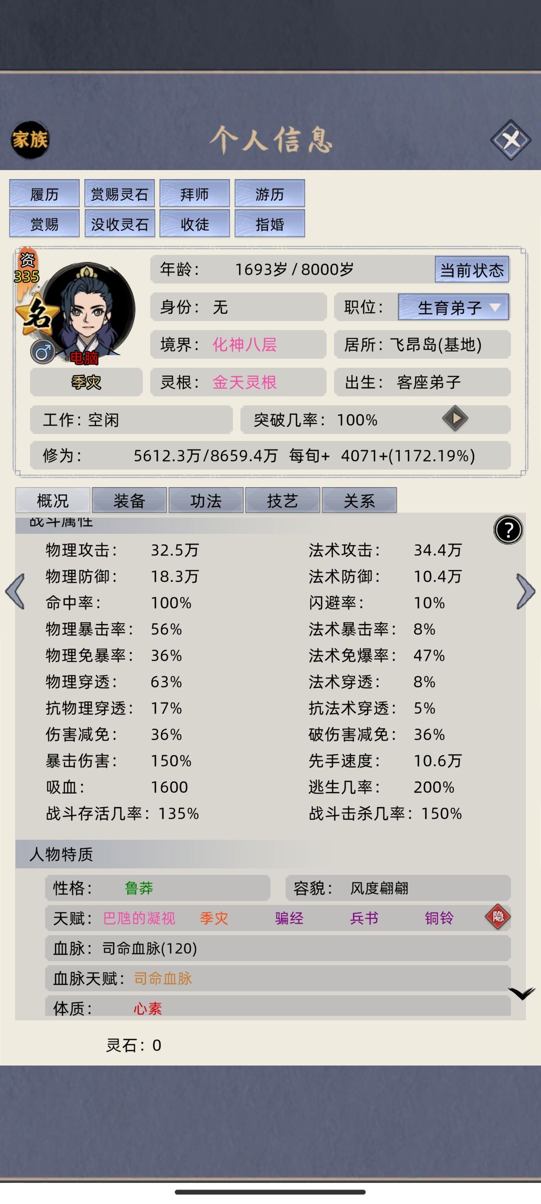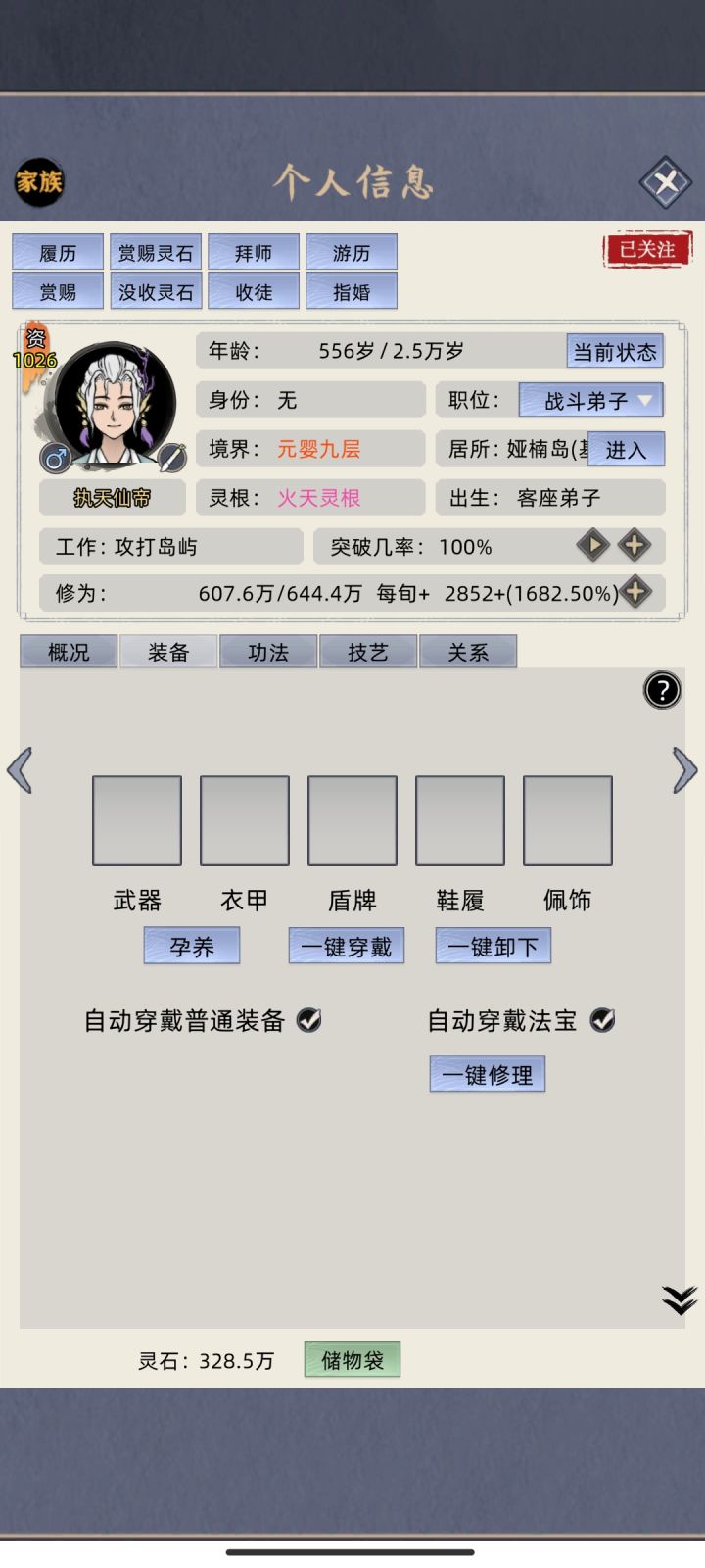 家族难度无装备元婴斩名人化神