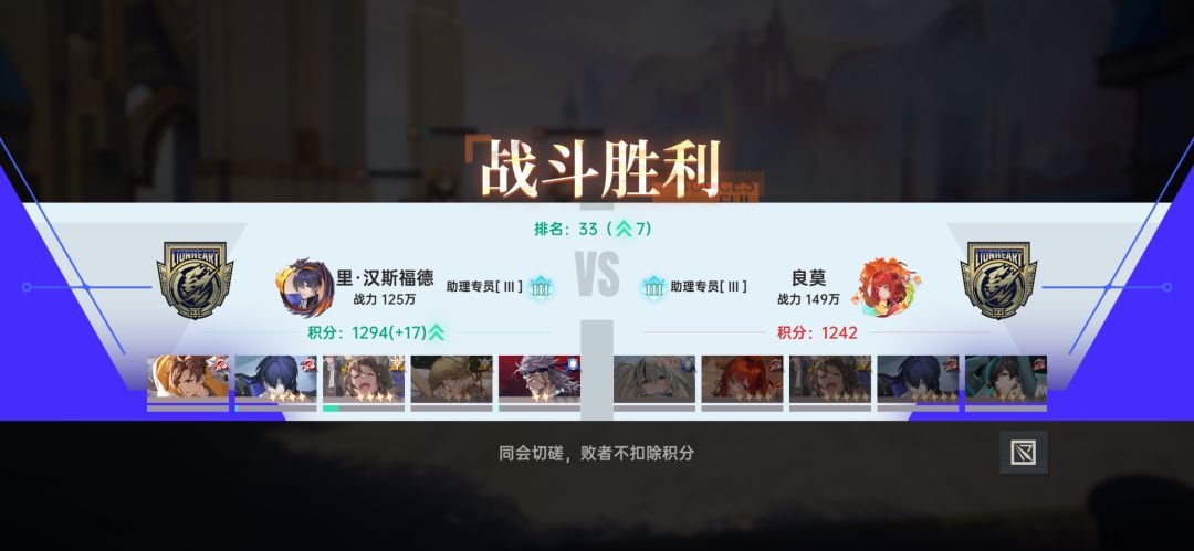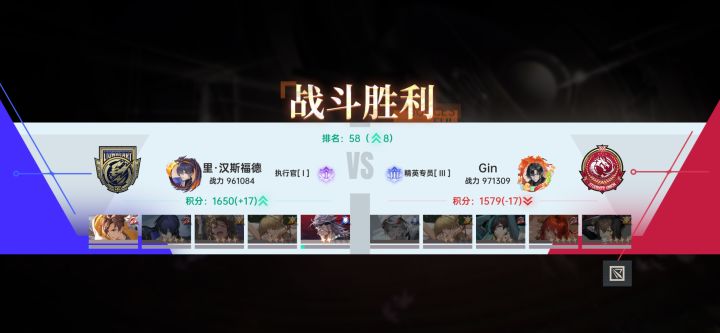 纯楚队:上杉越➕薯片➕楚夏➕主角(用破军),感觉在面对很多阵容包括当前版本答案绘梨衣时,都有一定优势。我用的这套阵容主角是破军,破军也挺强的,起码比星演强。上杉越作为版本T0前排,无论是保护还是扛伤,都是非常强的。p1~p3是前几天打学院风云的截图,p1打同是楚队的阵容,跃了10多万战力赢了,可见巨门在纯楚队还是不太好扛,楚队需要预热,相对而言,破军输出更稳定一些;p2跃了20万战力,打版本毒瘤楚绘队(真的毒瘤,大家不要一起上);p3打双路加绘梨衣,阵容上比前两个稍微好一些,在战力比我高一些的情况下,还是被我丝血险胜了,不过也是险胜,如果他换成零我可能就打不过了。p4~p5是我今天打的,p4同战力的情况下打绘梨衣的队伍也不虚,甚至赢了主角还剩一大半的血,p5继续越战20万暴打楚绘。