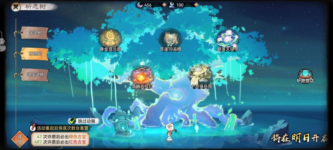- 祈愿树首次开启时间为9月21日,之后每隔三周会再次开启,应该会与仙途试炼同步。