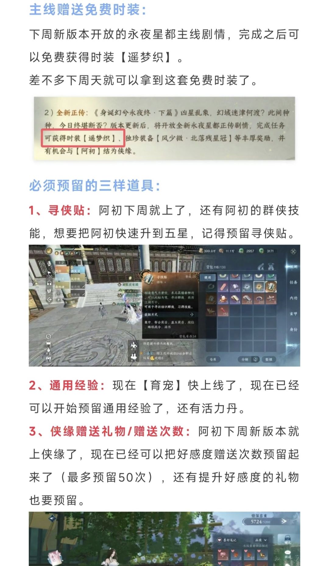 逆水寒手游下周五新时装展示,长相思联动确定上线,喜羊羊联动,主线赠送免费时装,必须预留的三样道具,新版本上线快人一步