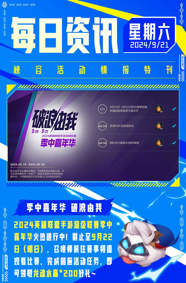 召唤师们别忘了明天14点,锁定英雄联盟手游赛事,一起观看2024英雄联盟手游超级联赛季中嘉年华~