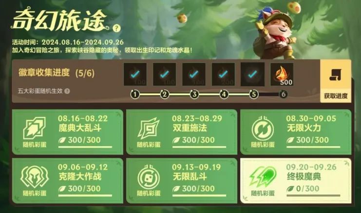 终极魔典模式限时全天开放中!截止至9月26日召唤师完成活动任务,即可助力徽章收集进度,领取出生印记-新枝桃彩和龙魂水晶*2800奖励~
