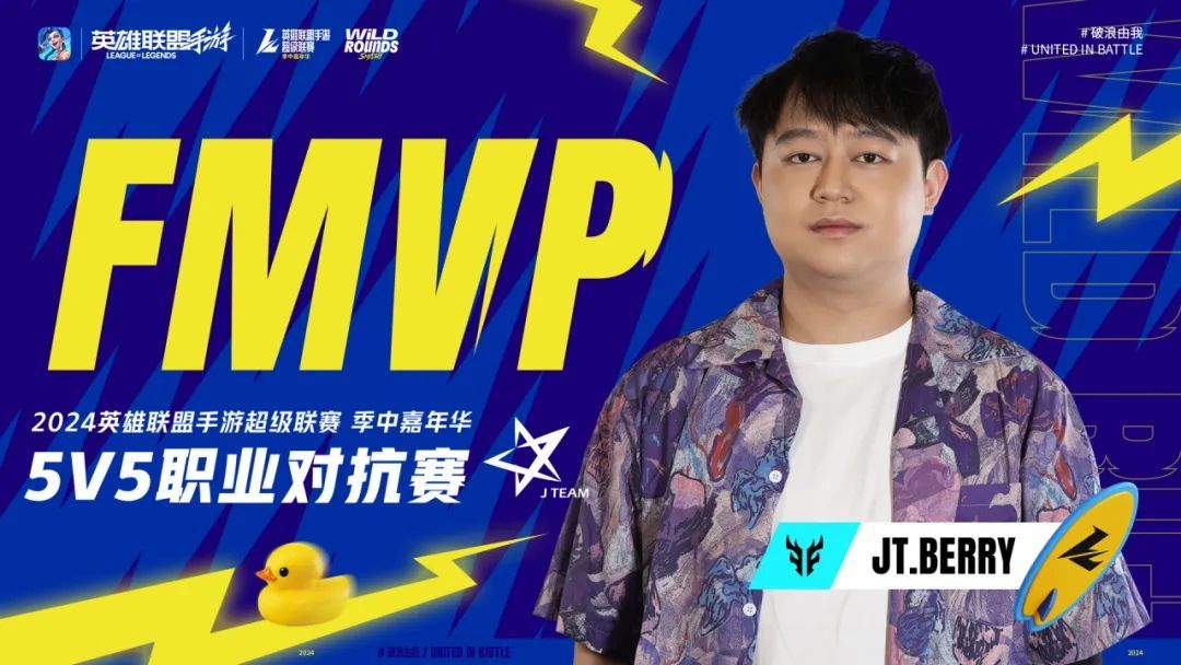 与此同时,我们还要恭喜JT.Berry斩获2024英雄联盟手游季中嘉年华5V5职业对抗赛的全场FMVP!
