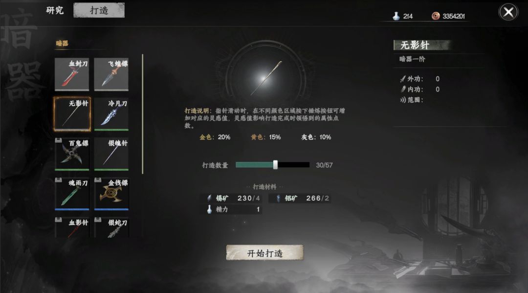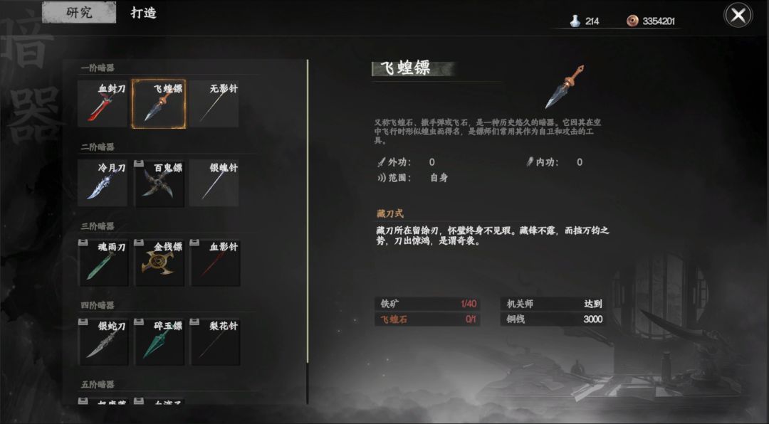 成为机关师后即可解锁暗器的研究和打造功能,晋升机关师身份可制作暗器的品阶也会增加,制作暗器使用到的材料可到唐门门派商店内兑换