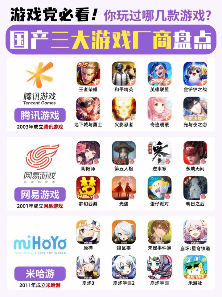的是腾讯、网易和米哈游三家