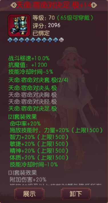这套搭配方案的最大优点就是能让神乐的团队效益发挥到极致,相对于天命4件套而言,天命头盔、鞋子做到极的成型期比较快,能够获得一个更好的辅助收益(少转移衣服裤子的强化等级也比较省金币233333)。
