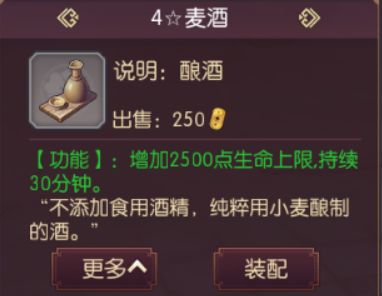相反的,麦酒、浊酒这些低等级的增益酒对于神乐而言会有更好的作用,制作这两种酒的材料比较简单,麦酒只需要有足够的小麦、浊酒则需要小麦与糯米两种材料才能制作,而这两种材料在交易行的售价都比较低廉,因此制作起来并不需要太高的经济成本,在空余时间做一些就足够神乐打副本的需要了。