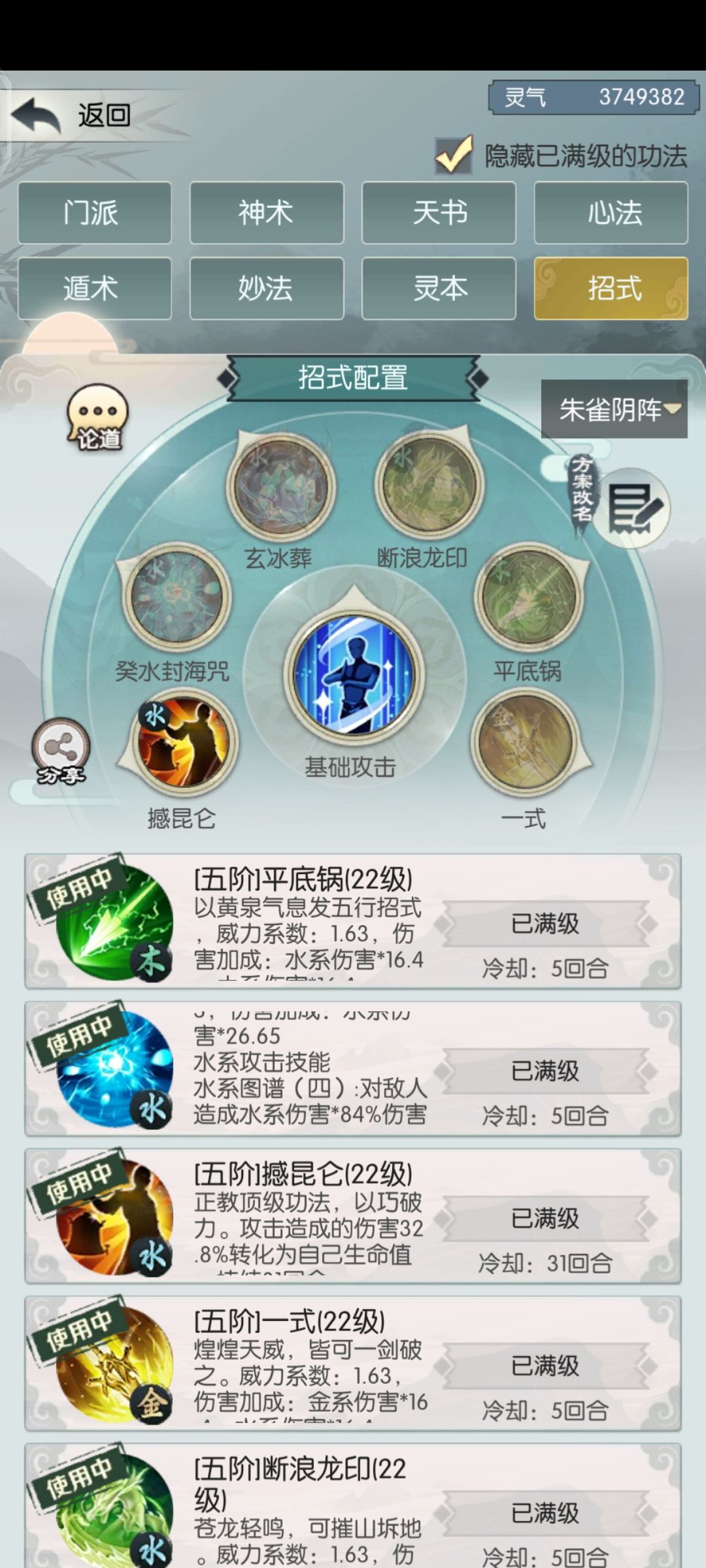 4,本体技能:撼昆仑+5个五行攻击技能