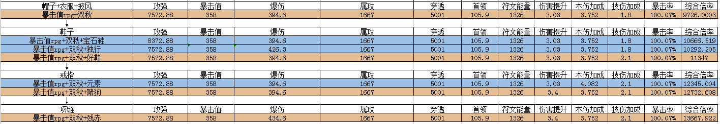 和平使者,由于双秋没有暴击值,所以只能让rpg提供暴击值,我试着算过不带暴击值,但是差距太大了,没法堆到比较靠谱的数值