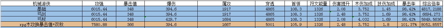 PS:对于机械游侠来说,双秋大概比双仙强17-20%,并且少了吞天剑带来的暴毙危险