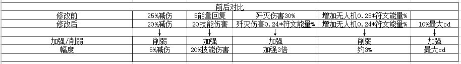 总体来说加强的不算太多,增加了技能伤害加成20%,以及10%的最大cd 比较关键,其他都是次要的