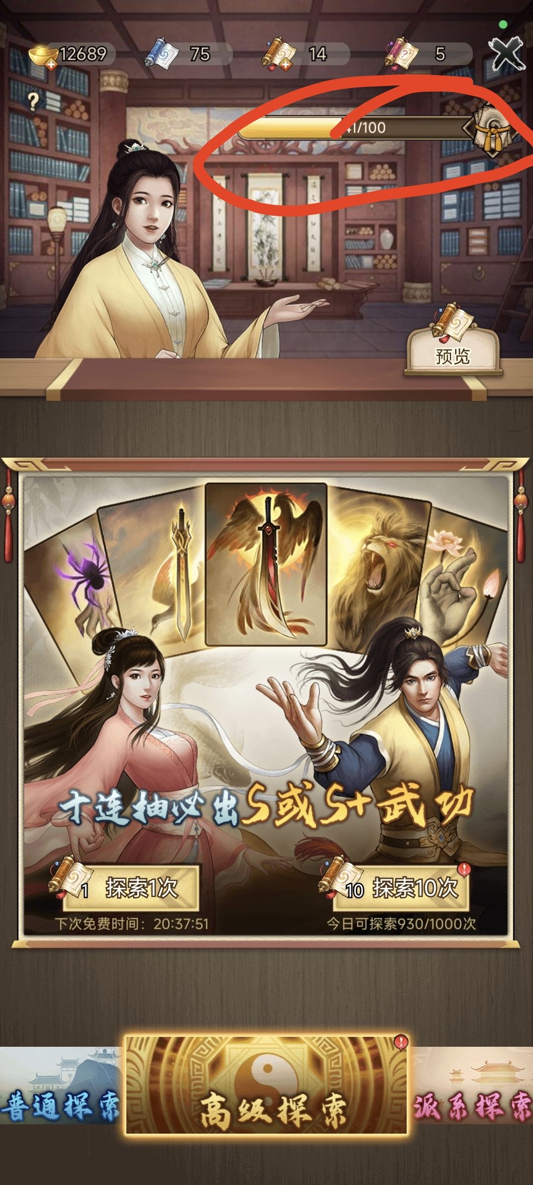 1.高级抽100抽,可以随机得到指定方向的s+功法。这个要谨慎,确定好自己选什么方向再搞。