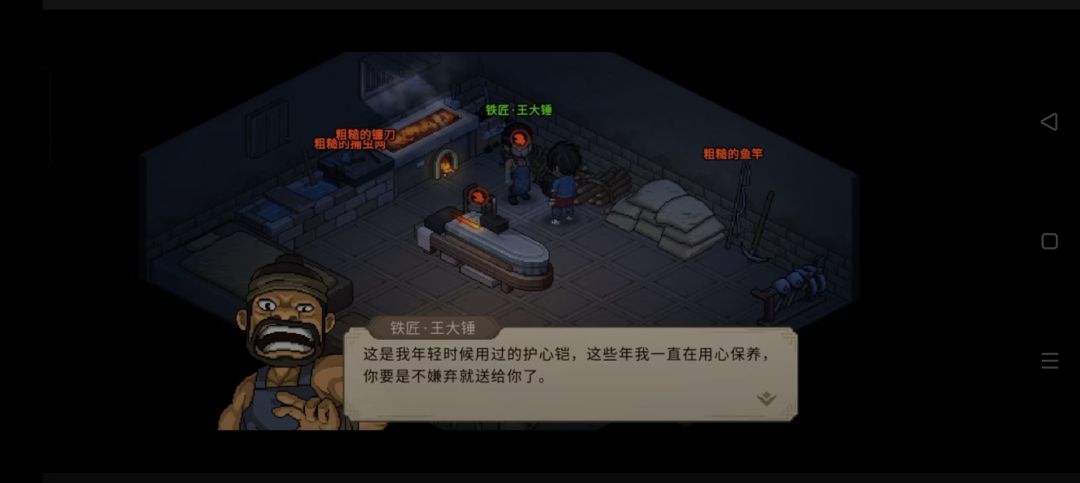 好感达到20可以易物铁匠钥匙开铁匠铺箱子获得精铁内甲、莽牛劲(蓄力)
