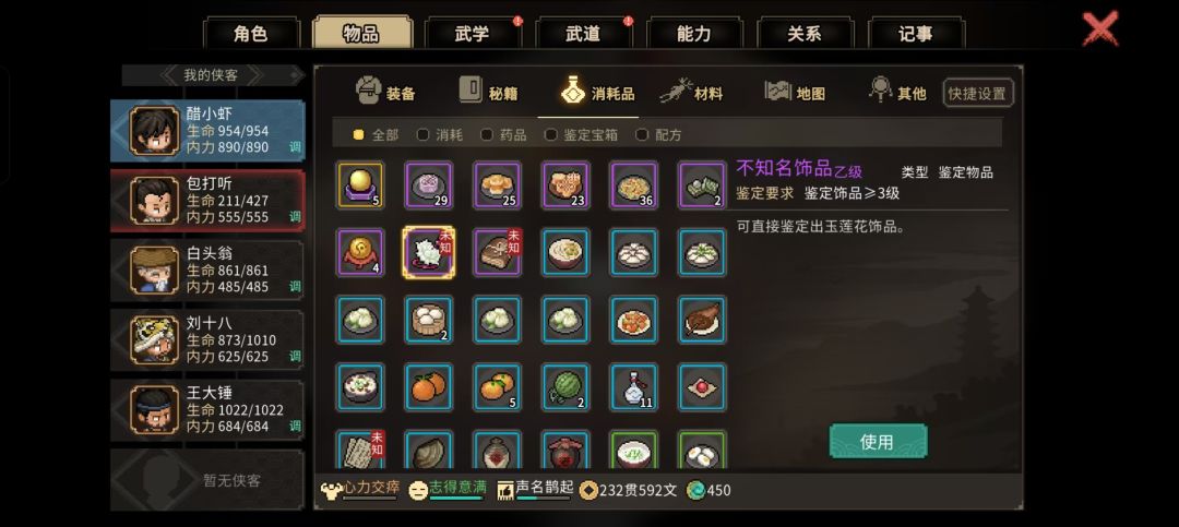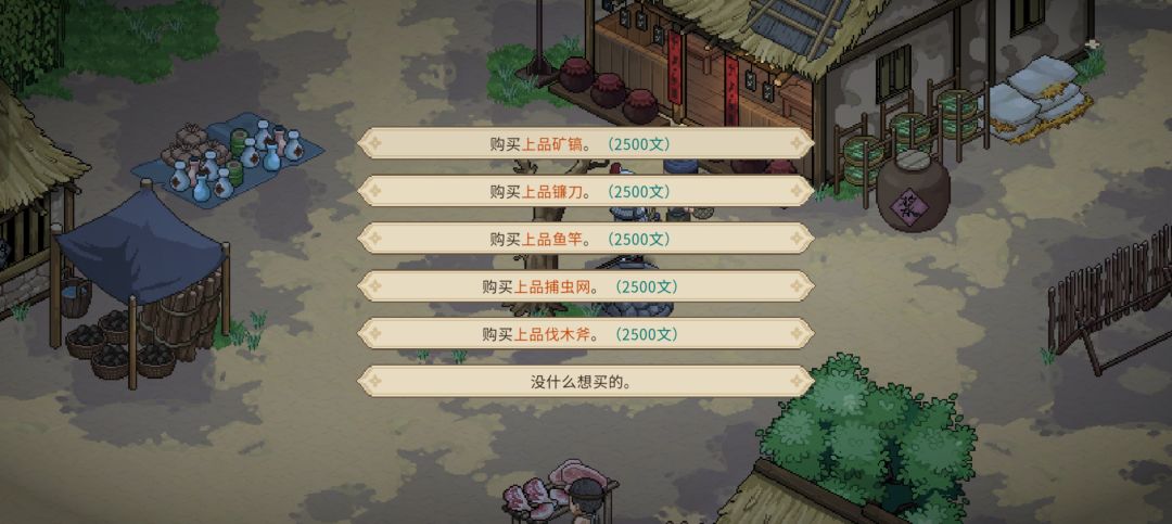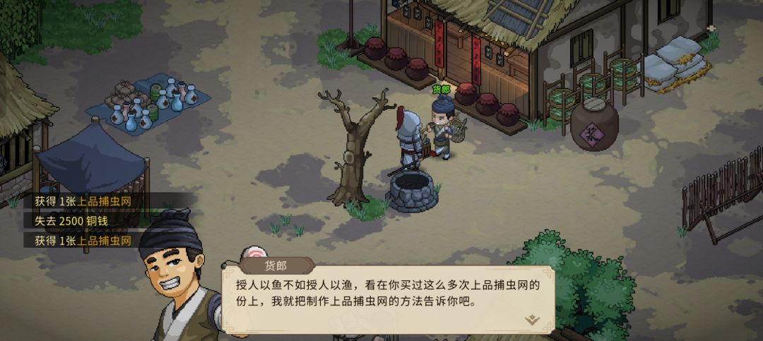 货郎:学习经商,可购买小说字画等送礼加村子大伙好感,货郎好感40时且任一采集技能到达4级可向货郎购买对应的上品采集工具,购买5次后掌握该上品采集工具的合成方法