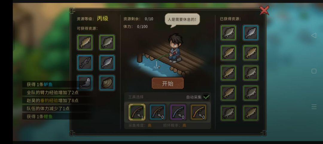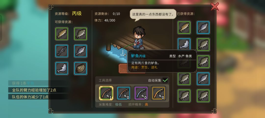 学习钓鱼(重要,前期鱼回复体力,尽量不要卖掉),获得钓竿(一周目经济不够可存档再钓,坏掉就读档)