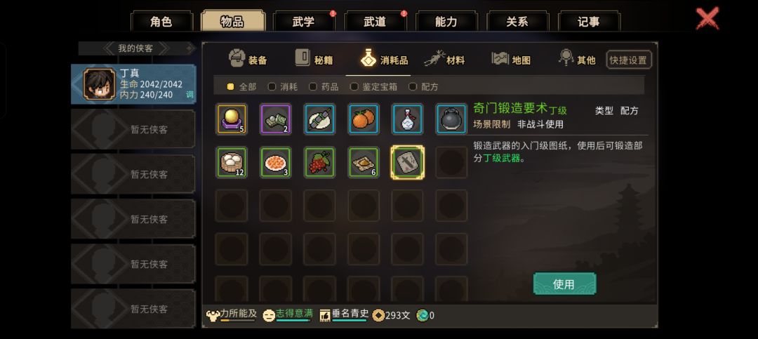 床上获得奇门锻造要术,背包使用