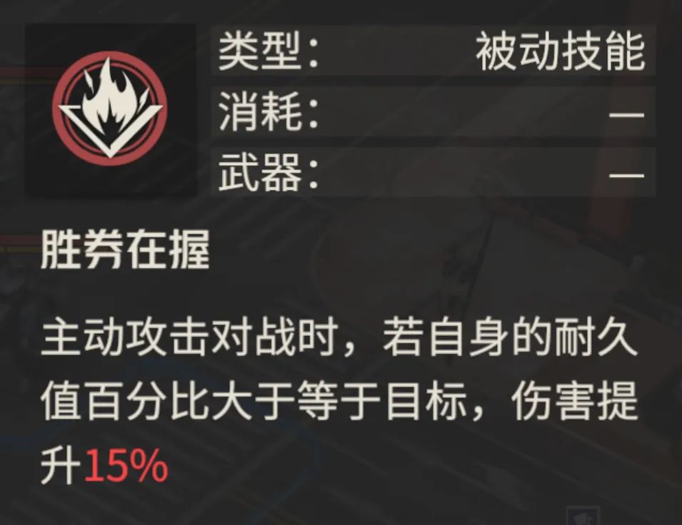 而增伤技能【胜券在握】则是选择优先级非常之高的被动,毕竟15%的增伤对于奥菲利亚来讲相当重要。