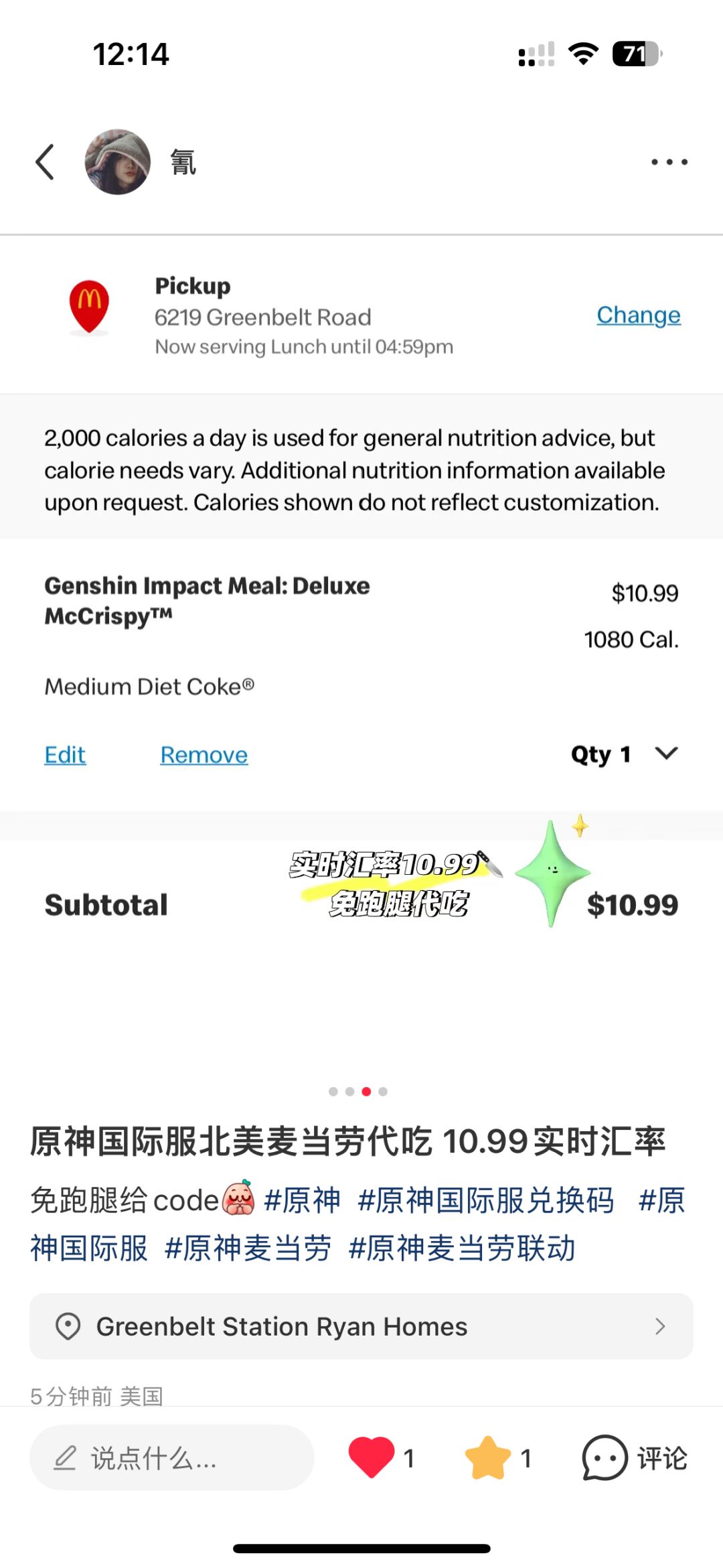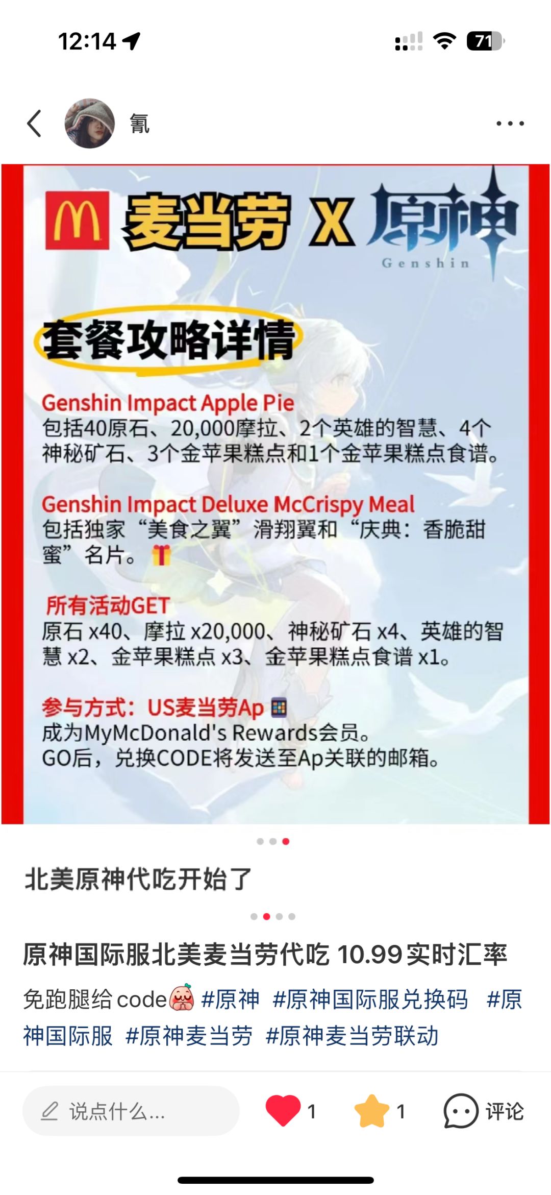 原神国际服麦当劳联名兑换码北美代吃 10.99🔪实时汇率免跑腿
