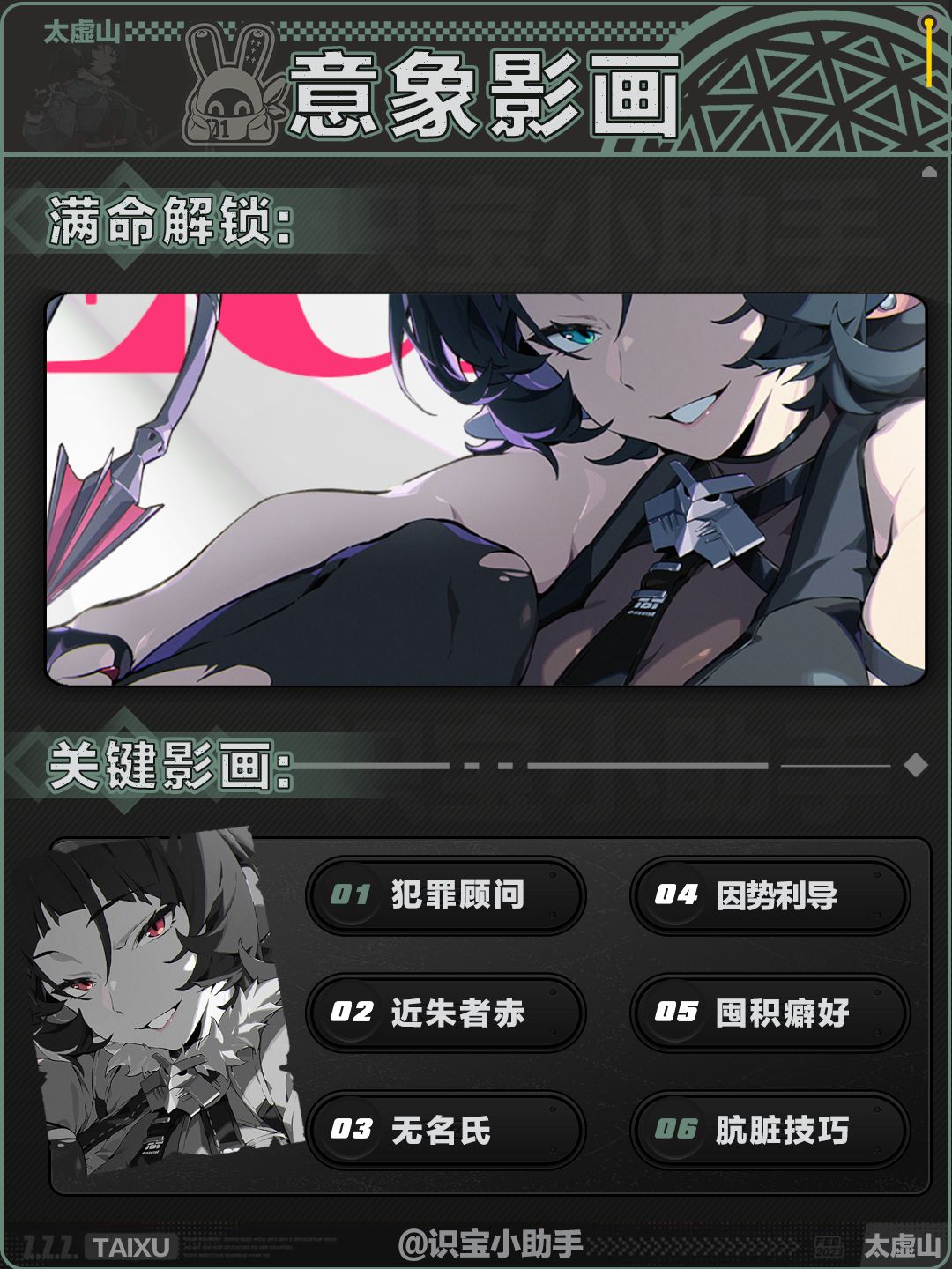 1:犯罪顾问:普攻次数上限增加且额外提升物理异常积蓄效率,异常精通可以提升自身造成伤害。