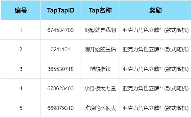 恭喜以下旅行者在本次活动中获得【亚克力角色立牌】*1(款式随机)!请获奖的旅行者在【2024年10月31号 18:00前】添加客服QQ【3862993516】并提供相关信息用于核对获奖资格、收货地址。实物奖励将在开奖后15个工作日内寄出,逾期未添加客服QQ进行获奖资格及收获地址核实视为自愿放弃